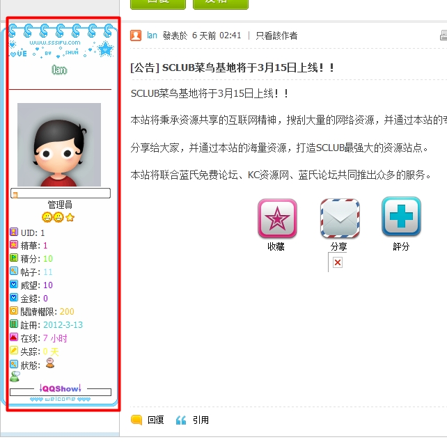 SCLUB免費論壇申請-使用者論壇